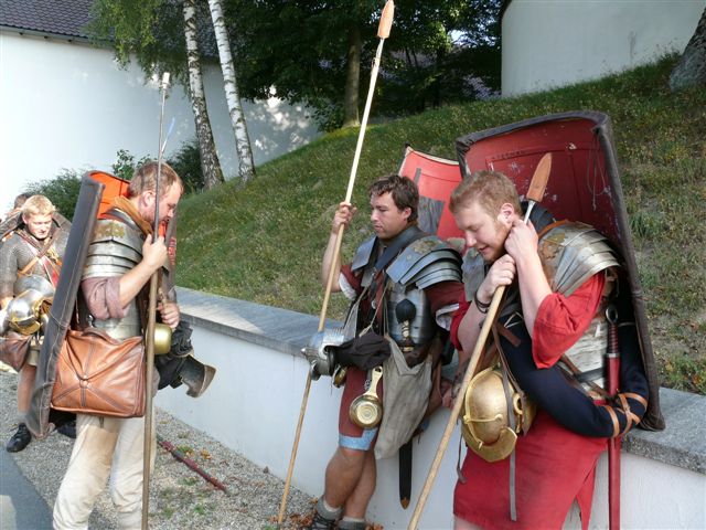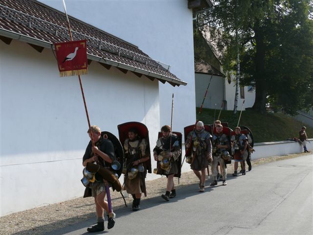 Mit schweren Rüstungen bekleidet, Schnürstiefeln an den Füßen und Speeren zieht eine Gruppe von zehn römischen Legionären vom 4. August bis zum 5. September vom österreichischen Petronell nach Regensburg. Rund 450km Fußmarsch………….wie würde Oberlix sagen: “ Die spinnen die Römer“.
